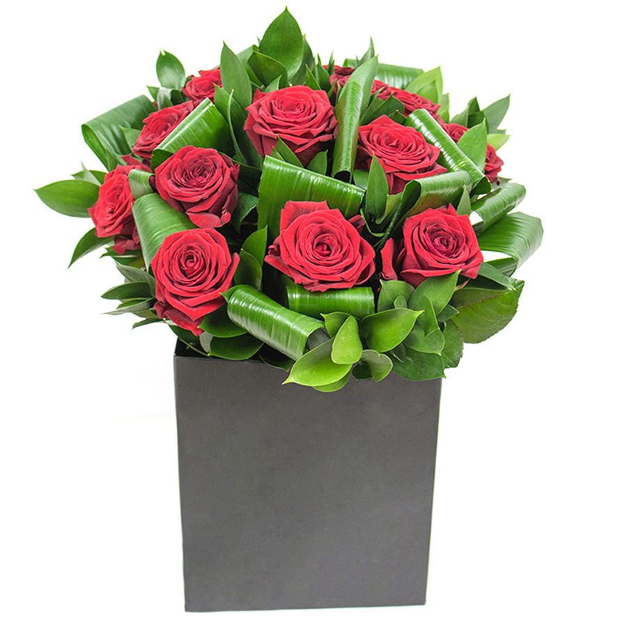 Immerse yourself in the art of floristry with our luxurious bouquet, where the timeless beauty of red roses is elegantly complemented by aspidistra leaves and ruscus. This arrangement exudes both passion and sophistication, featuring a vibrant mix of colors and textures that captivate the eye and uplift the spirit.